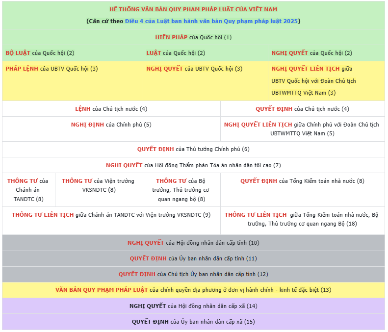 Hệ thống pháp luật Việt Nam có quy định rõ về thứ bậc văn bản.