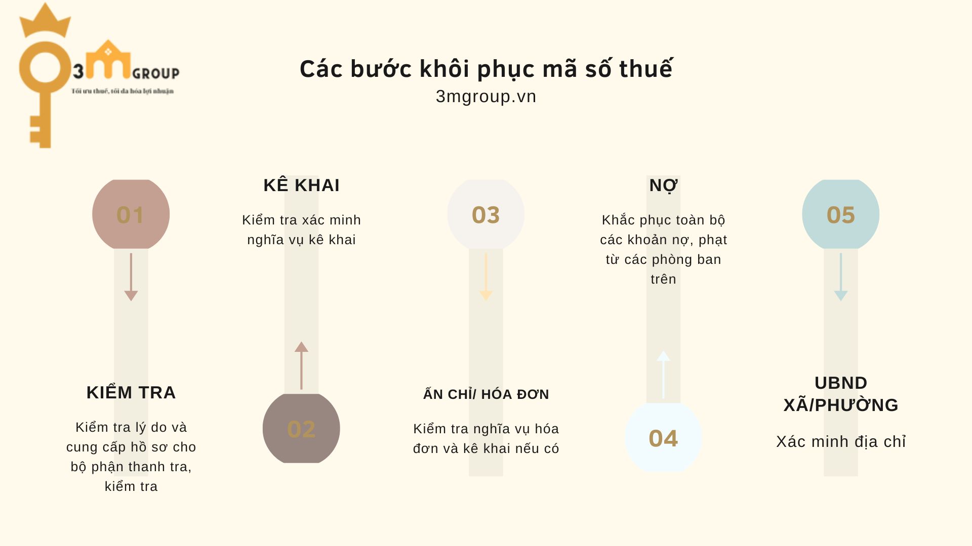 Dịch vụ kế toán – Đại lý thuế 3MGROUP với kinh nghiệm hơn 15 năm trong lĩnh vực kế toán – thuế – pháp lý doanh nghiệp, sẽ đồng hành cùng bạn xử lý trọn gói hồ sơ mở lại mã số thuế, đảm bảo nhanh – đúng – tiết kiệm thời gian.